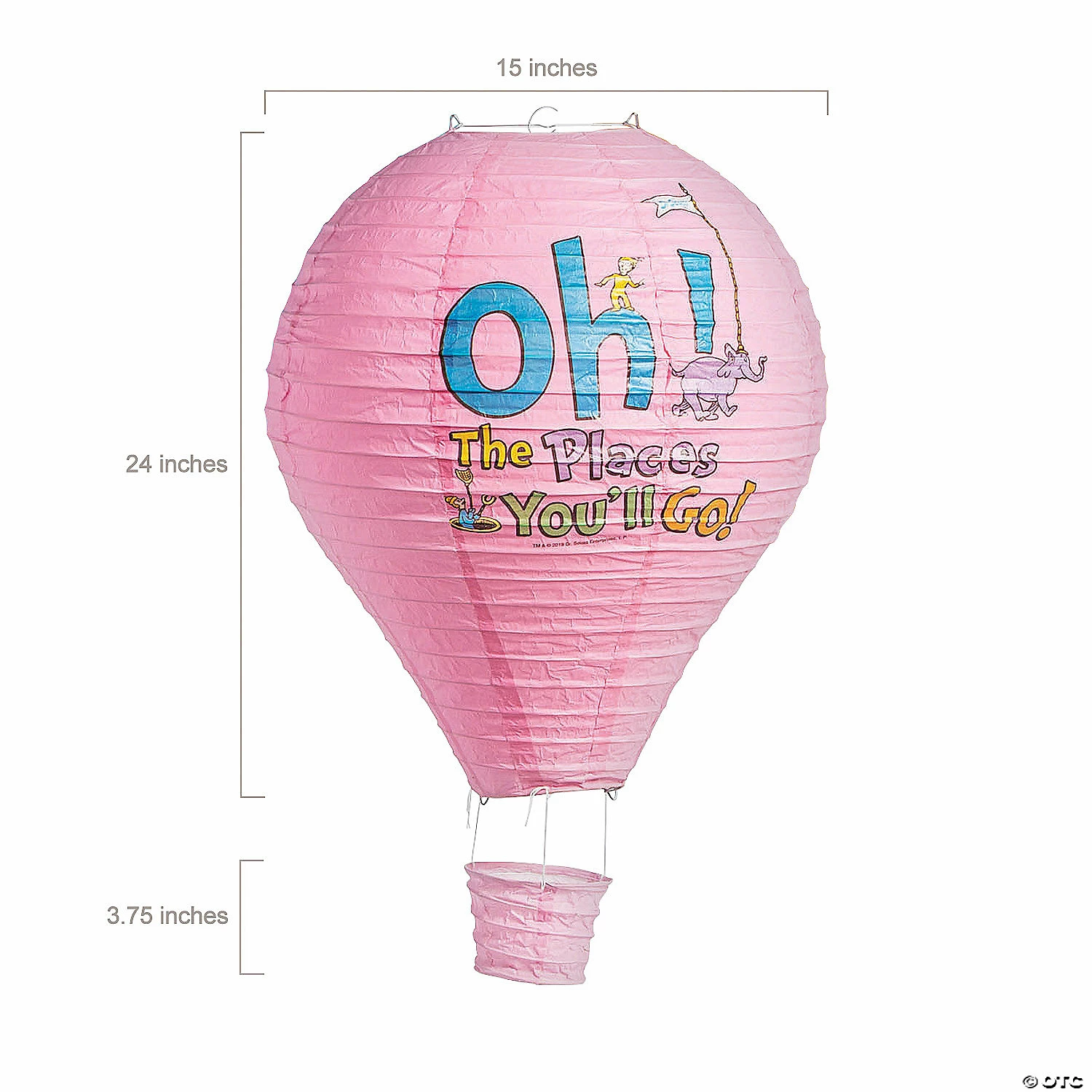 • QUALITY DECORATIONS: These sturdy, versatile hot air balloon lanterns can be used time and time again to celebrate any occasion in your life! Mix and match different colors to fit your party theme.• PERFECT FOR ANY EVENT: Our Dr. Seuss decorations give your kids’ library event, Dr. Seuss birthday party, or elementary school classroom literary style!• BUDGET-FRIENDLY DIY DÉCOR: Not just for parties, these lanterns make beautiful, affordable additions to your home décor, classroom decorations, dorm décor and more.• A TOUCH OF BEAUTY AND CLASS: Hang these lanterns as they are or place battery-operated tea lights inside (sold separately) to add a soft, elegant glow to your event and really awe your party guests!Product Description:Perfect as classroom decorations for any grade or as graduation party decorations, these hot air lanterns add color and depth to any space. Featuring images from the beloved Dr. Seuss™ book, these balloons point toward future adventures and ascent. Great for grad photo booths, these decorations will add some depth to decorations in any space. Size: 15″ x 24″ lantern with a 3 3/4″ basketShape: RoundQuantity: 3Material: PaperIncludes wire hangers. Simple assembly required. © OTC / ™ & © Dr. Seuss Enterprises, L.P. All Rights Reserved.