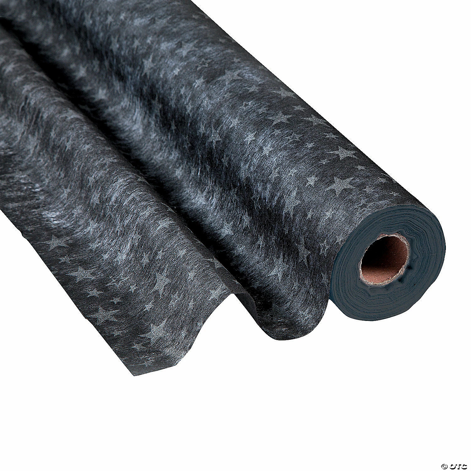 Great for curtains, table covers or other creative cover-ups, this Black With Silver Stars Gossamer fabric roll makes it easy to create a variety of decorating effects at your next star-studded event. Donβt worry about running out, either. With 100 ft. of fabric on the roll, youβre sure to have plenty to detail and decorate your entire event. 100 ft. x 3 ft. Imported.