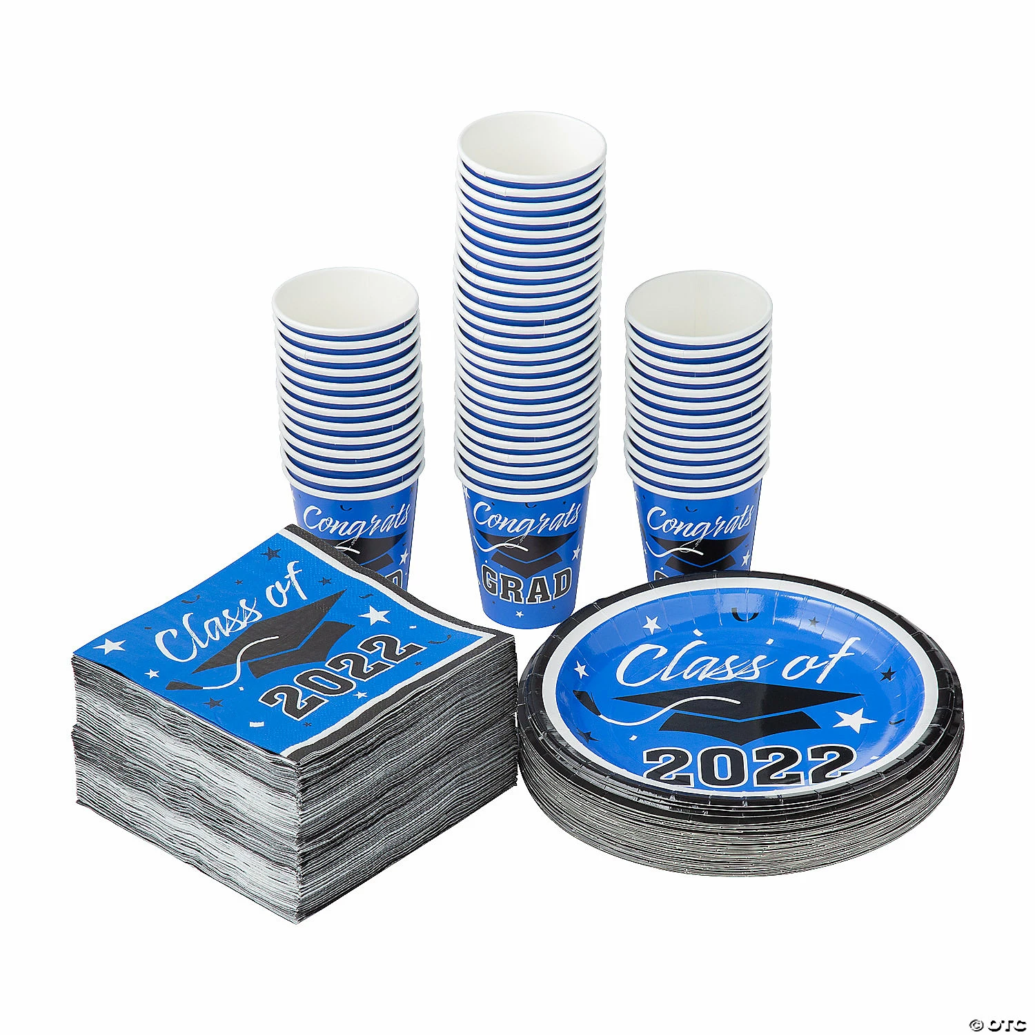 Complete the look of your graduation partyβs food table with this tableware kit full of enough disposable cups, plates and napkins for up to 50 guests. Celebrate the grad with disposable tableware that has Class of 2022 messaging along with graduation images. Be sure to check out all the Class of 2022 party supplies available here on this website! Paper. (200 pcs. per unit)Includes:β’Β 100 Paper Luncheon Napkins (6 1/2″)β’Β 50 Paper Dinner Plates (9″)β’Β 50 Paper Cups (3 3/4″ 9 oz.)