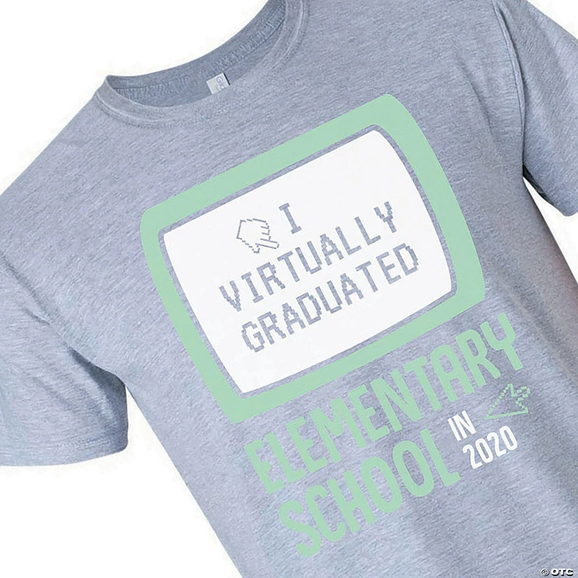 Instead of elementary school ending with a big party with classmates and teachers, it’s closing with homeschooling, e-learning and parents and siblings. But still, elementary graduation is a big deal! Pick up this comfy graphic tee as a graduation gift for your young grad so they can still show off their big accomplishment. This 2020 graduation shirt will be great to wear when your child does get back in the classroom! Β© OTCβ’ Gildanβ’ Short sleeveβ’ Preshrunk 100% ring spun cotton, 4.5 oz.β’ Double-needle stitched neckline and sleevesβ’ Quarter-turnedβ’ Taped neck and shoulderβ’ Seamless seven-eighths inch collarβ’ Tearaway labelβ’ Need more? With our tees, we’ve got your back (and front)! To order in bulk for any size group, just call 1-877-513-0384. Or, give us a ring if youβd like to easily customize any of our pre-printed shirts with our free design service.