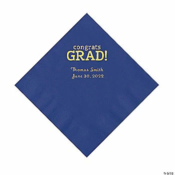 Whether you’re planning a grand grad party or a small grad gathering, these napkins are the perfect choice when shopping for graduation supplies. Ideal for keeping messy fingers clean in style, these napkins display “Congrats Grad!” messaging and are ready to customize with the grad’s name and their grad party date. Personalize with 2 lines of text. Printed with gold or silver foil. Paper. (50 pcs. per unit) Beverage, 5″; luncheon, 6 1/2”. Not microwave safe. © OTC