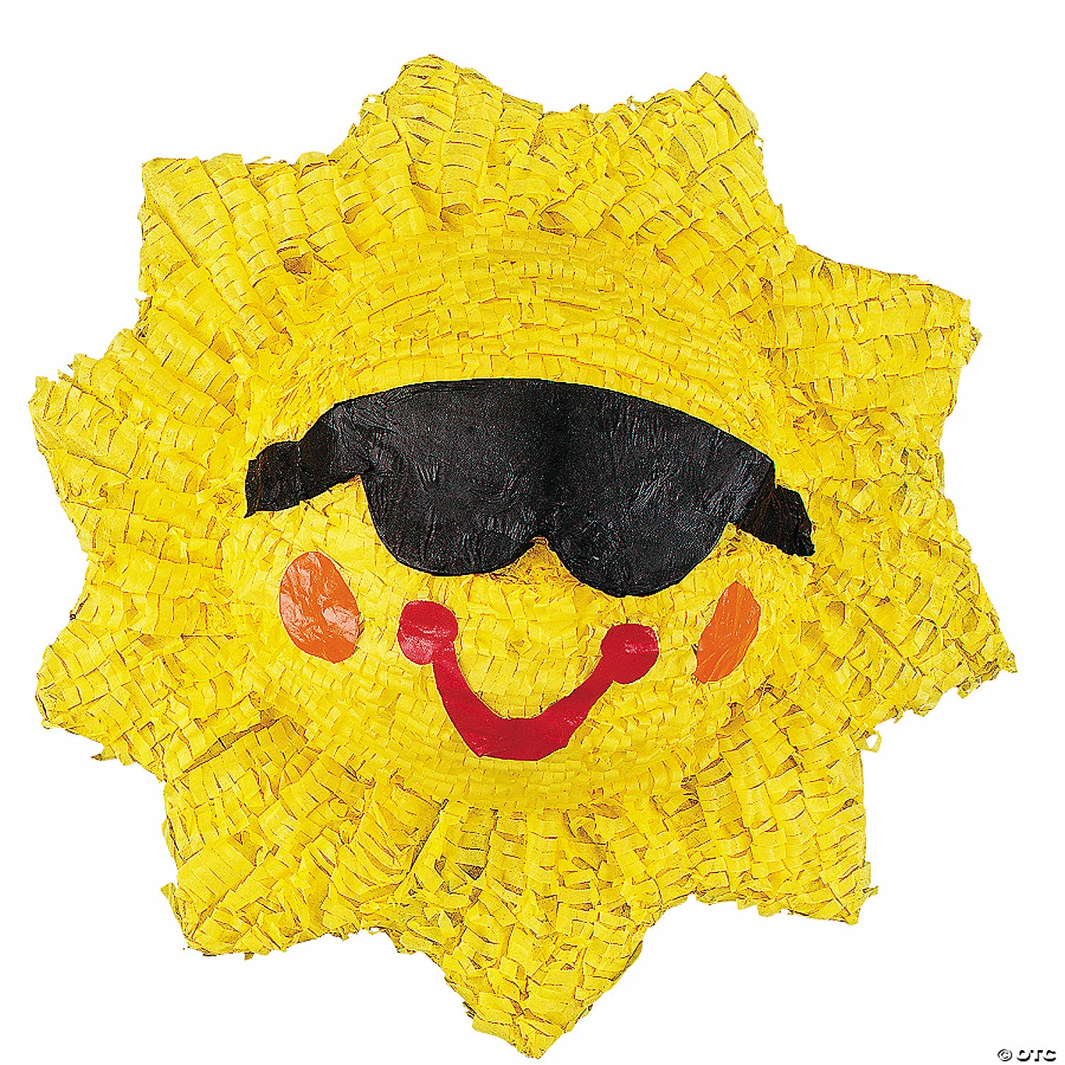 Throwing a luau themed birthday party? Fill this sunny papier-mâché piñata with candy or small toys for lots of fun! It’s a great kid’s beach party idea that will give the kids a day to remember. Get your own smiling piñata to add a drop of tropical sunshine to your next luau or summer-themed party! Includes hanger. 21″ x 21 1/2″ Piñata stick and toy & candy assortment sold separately.